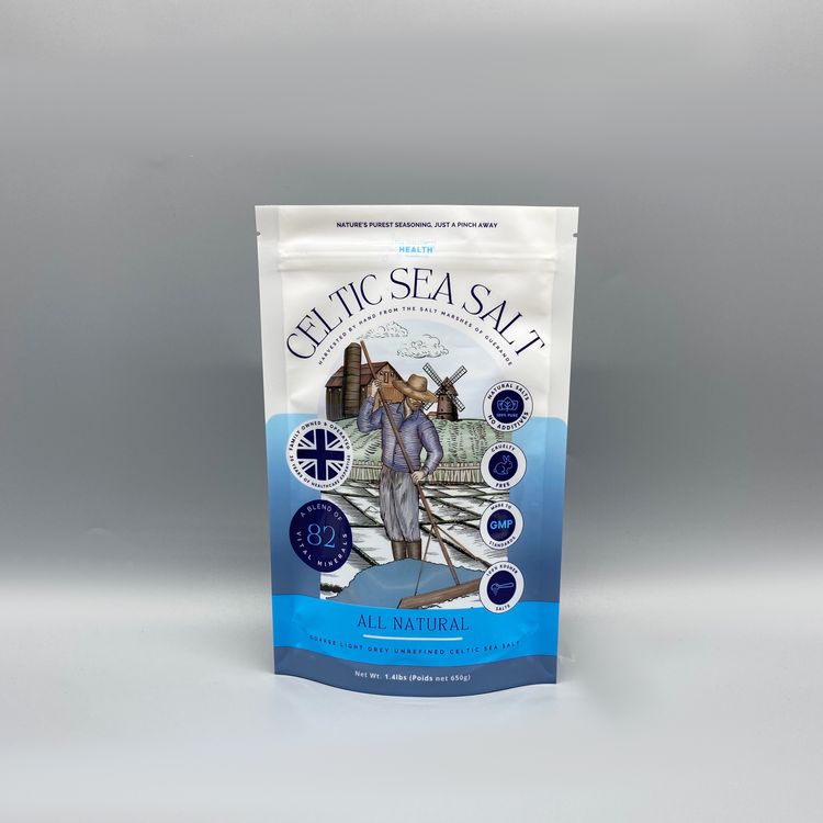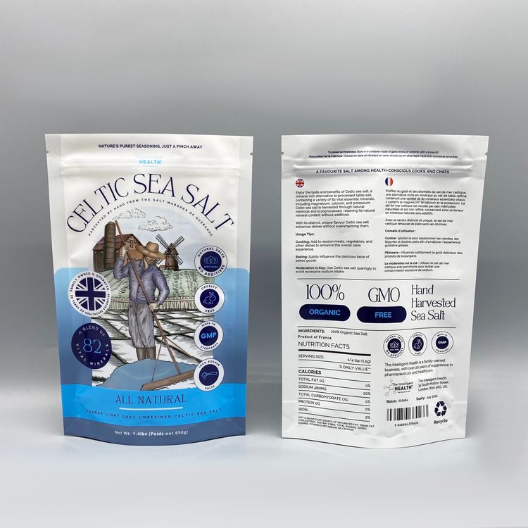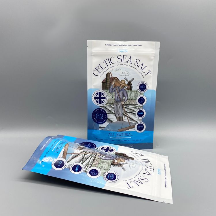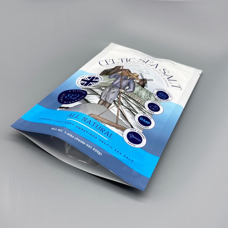 海鹽袋采用自立拉鏈袋設計,這種袋型能夠穩固地站立