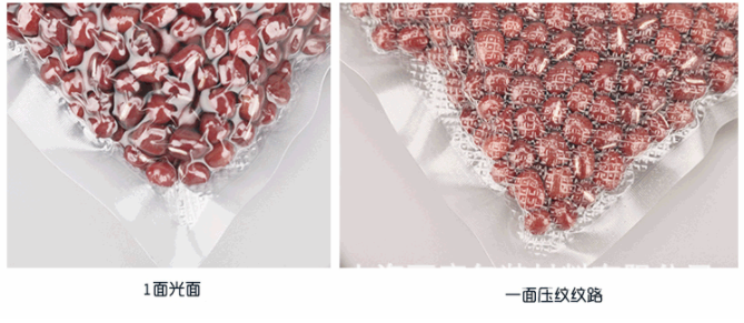 真空包裝袋具有阻隔性強、防水、防潮、防氧化等優點,能有效延長食品保質期,因此是當前食品中常見的包裝方式。我們常見的真空包裝袋都是表面光滑無紋路的,那么表面有紋路的真空袋您見過嗎?紋路真空袋與普通真空袋有什么區別呢?